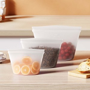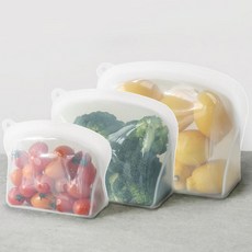 세 가지 용량이 포함된 프리미엄 실리콘 지퍼백 세트로, 음식 보관과 조리, 냉장·냉동 모두 사용 가능하며 내구성이 뛰어나 재사용이 가능하다.