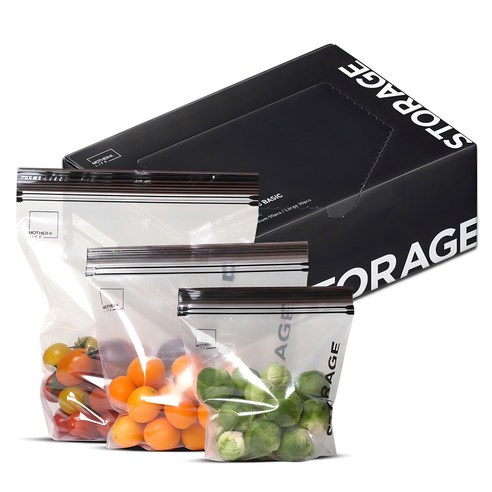 크기별 지퍼백으로 구성되어 식품이나 소형 물품을 위생적으로 보관하기 좋으며 냉장과 냉동 모두 사용 가능하다.