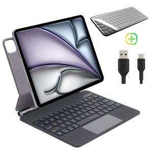 아이패드 에어 4~7세대 및 프로 1~8세대와 11/12.9/13인치, 10/11세대 모델과 호환되는 블랙 매직 키보드 케이스로, 블루투스를 통해 무선 연결이 가능하며 한글 각인이 되어 있어 한국어 입력이 편리하고, 키보드와 케이스 기능이 통합되어 이동 중에도 노트북처럼 활용할 수 있는 제품입니다.