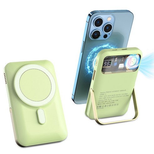 맥세이프 무선 충전을 지원하며 10000mAh 용량으로 외부에서도 안정적인 전원 공급이 가능하고 PD 22.5W와 QC3.0 고속충전으로 다양한 기기 충전이 가능하며 C타입 포트를 제공하고 핸드폰 거치대로도 활용 가능한 보조배터리입니다.