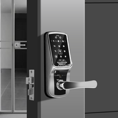 무타공 설치가 가능하며 Wi-Fi 연결로 스마트폰 앱을 통해 아파트 현관문이나 호텔 숙박 시설의 출입을 원격 제어할 수 있는 3Way 디지털 도어락으로, 카드키와 번호키를 함께 사용할 수 있는 제품입니다.