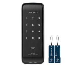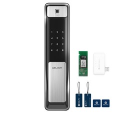 솔리티 웰콤 패스온 무타공 푸시풀 디지털손잡이 있음 도어락 WP-450B + 블루투스팩 + 카드키 2p 세트