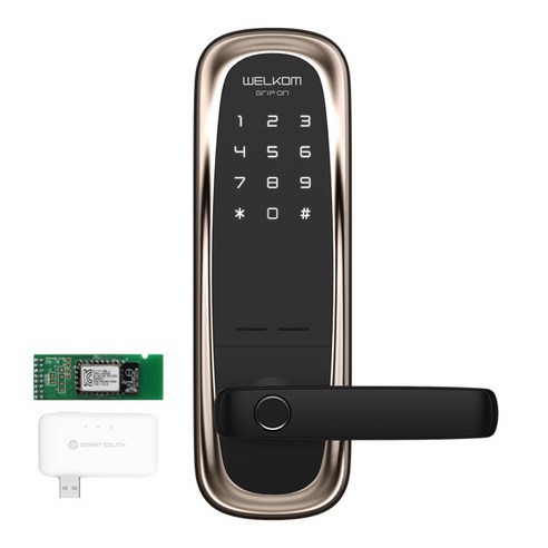 솔리티 웰콤 그립온 손잡이 있음 도어락 WM-650B + 블루투스 + 스마트 브릿지 세트