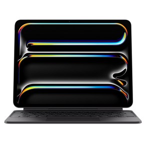 iPad Pro M5 모델과 호환되며 블랙 색상으로 제작된 매직 키보드는 슬림한 디자인으로 휴대성이 좋고, 키보드와 트랙패드가 결합되어 생산성과 입력 효율을 높이며, 스마트 커넥터를 통해 별도 충전 없이 바로 사용할 수 있고, 안정적인 키 입력감과 다양한 화면 각도 조절 기능을 제공한다.