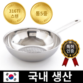국산 316Ti 스텐 후라이팬 통5중 인덕션 IH, 1개, 스텐웍, 실버